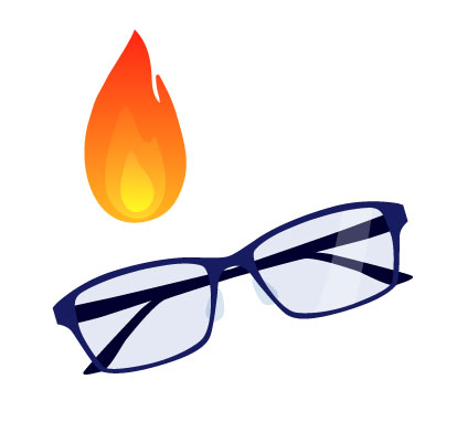 暖房機の近く、炎天下の車内など、長時間高温になる場所に置くとフレームやレンズが熱で変色・変形することがあります。